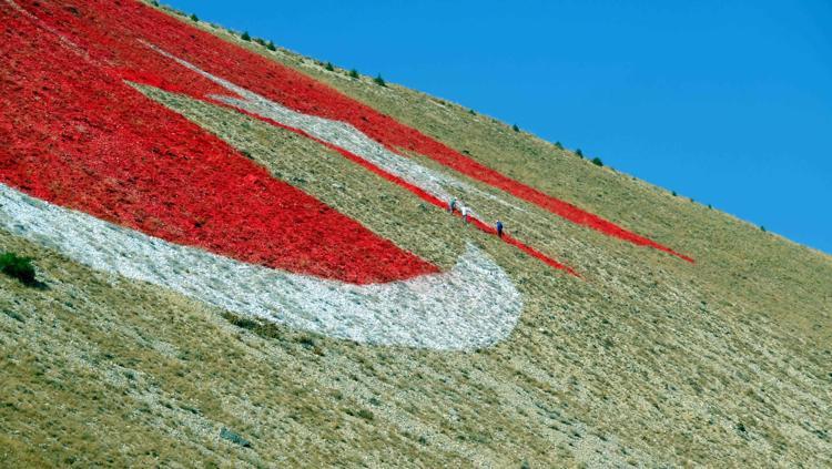 Çünkü bu dağlar artık sadece bir doğa değil, bir milletin onurudur. Bayrağımızın boyamasını kompresörlü pompalarla özel asfalt boyası kullanılarak yapılmakta.