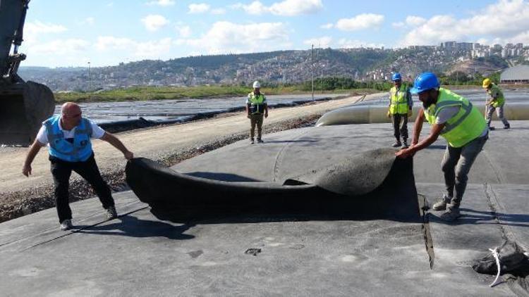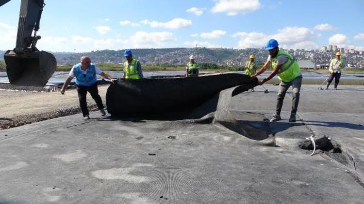 Türkiye'nin en büyük çevre projesi olan İzmit Körfezi'nden dip çamurunun temizlenmesi projesi kapsamında 2 Mayıs'ta başlayan çamur çekme işleminde toplanan dip çamurunun yeterli miktarda kurumasının ardından, belirlenen alanda ilk depolama bugün başladı.