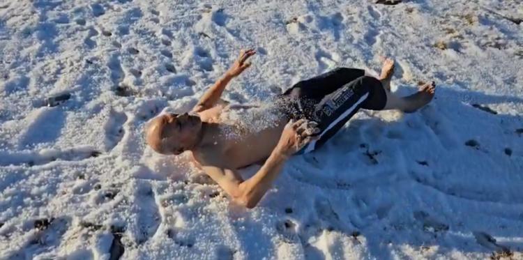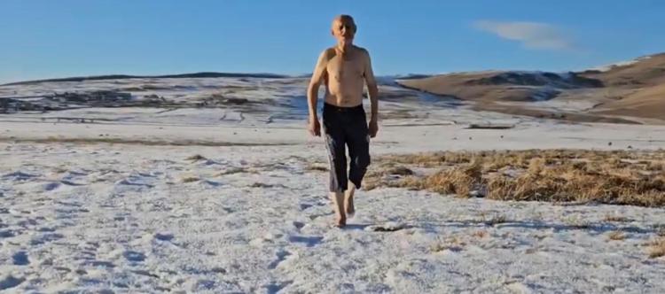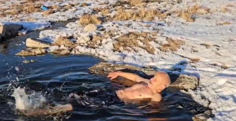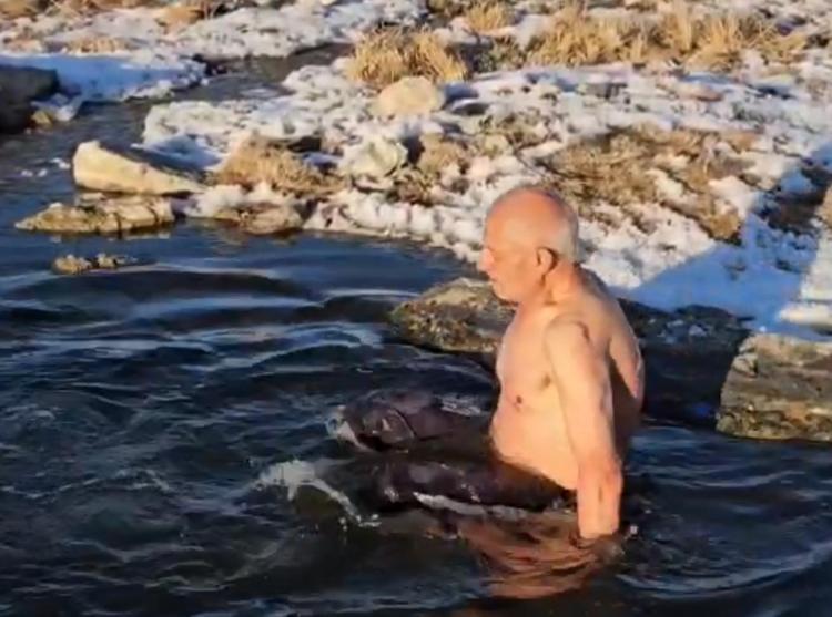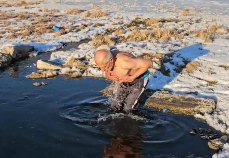 Kış aylarında en düşük hava sıcaklığının sıfırın altında 30 derecelere kadar düştüğü Ardahan’ın Göle ilçesinde yaşayan Zeki Ustaoğlu (78), karda çıplak ayakla yürüyüp, buz gibi suya girdi.