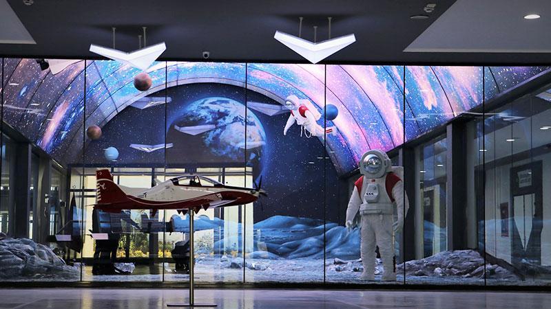Ankara'nın Elmadağ ilçesinde bulunan Türkiye'nin havacılık ve uzay alanındaki ilk meslek lisesi, DHA tarafından görüntülendi. Okulda, ayın yüzeyi şeklinde tasarlanmış fanus alanı, gezegenlerden oluşan dekorasyonu, uzay temalı duvarları, uçak kaldırma simülasyonu yer alıyor. Sınıflardaki tahtaların üzerinde ise Ulu Önder Atatürk'ün 'İstikbal göklerdedir' sözü yazılı.