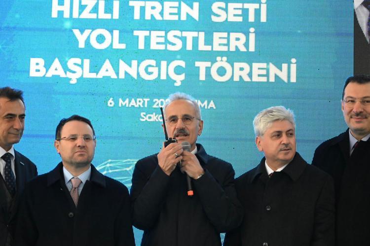 Ulaştırma ve Altyapı Bakanı Abdulkadir Uraloğlu, Türkiye Raylı Sistem Araçları A.Ş. (TÜRASAŞ) tarafından yerli imkanlarla üretilen Türkiye’nin ilk hızlı treninin test süreçlerine ilişkin yazılı açıklama yaptı. Türkiye’nin ilk hızlı trenini üretiminin tamamlanmasının ardından test sürüşleri için raylara indirdiklerini belirten Bakan Uraloğlu, dinamik yol testlerinin başarıyla devam ettiğini kaydetti. Hızlı trenin kritik testlerinden biri olan dinamik fren testlerinde önemli bir başarıya imza attıklarını duyuran Bakan Uraloğlu, "Yerli ve milli imkanlarla üretimini tamamladığımız Türkiye’nin ilk hızlı treni dinamik fren testlerinin henüz ikinci gününde saatte 225 kilometre hıza başarıyla ulaştı. Hızlı trenimiz testlerin en kritik aşamasını iki gün gibi kısa bir sürede geçerek mühendisliğimizin ve işçiliğimizin teknolojik yetkinliğini kanıtladı, önemli bir başarıya imza attı" dedi.