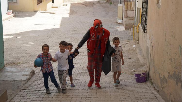 İzmir’de yaşayan Ayaz Salih Koç, 6 Şubat depremlerinin ardından gönüllü olarak deprem bölgesine gitti. Yanında götürdüğü 'Örümcek Adam' kostümüyle çocukları eğlendiren Koç, bölgede yardım çalışmalarında yer aldı.