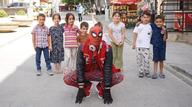 Kahramanmaraş merkezli depremlerde çocuklara yönelik çalışmalarıyla dikkat çeken ve daha sonra Türkiye'yi gezme hayaliyle memleketi İzmir'den 'Örümcek Adam' kostümüyle yola çıkan Ayaz Salih Koç (26), 65’inci durağı olan Şırnak'a geldi. Koç, kentte çocuklarla buluşup sohbet etti, fotoğraf çektirdi.