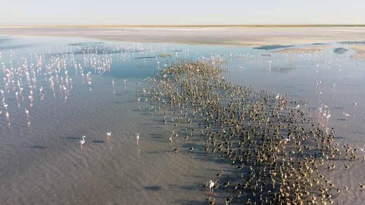 Türkiye'nin ikinci büyük gölü ve 'flamingo cenneti' olarak bilinen Tuz Gölü'nde şimdilerde yavru flamingolar ağırlanıyor. Dünyada flamingoların kuluçkaya yattığı en önemli sulak alanlar arasında bulunan Tuz Gölü’nde, yumurtadan binlerce yavru çıktı.