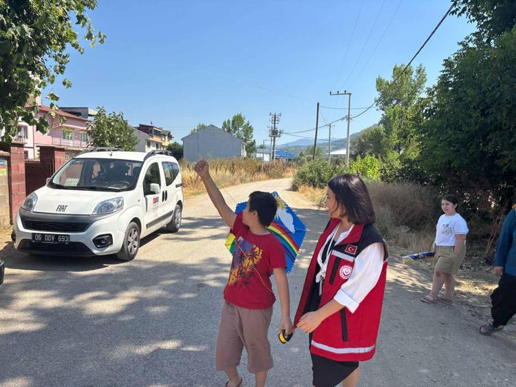 Bursa'nın İnegöl ilçesinde, uçurtma yapmak için bıçkıyla kestiği ahşabın fırlamasıyla parmakları parçalanan İbrahim T.’nin (51) 8 yaşındaki oğlu Yusuf’a, İnegöl Kaymakamı Eren Arslan’ın talimatıyla uçurtma hediye edildi.