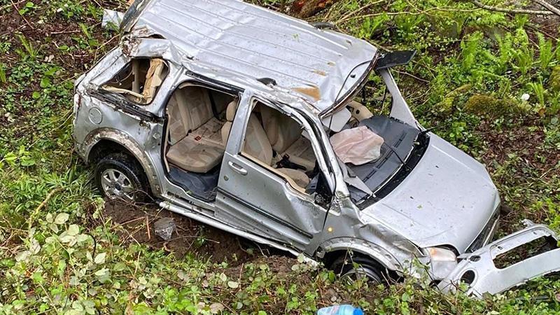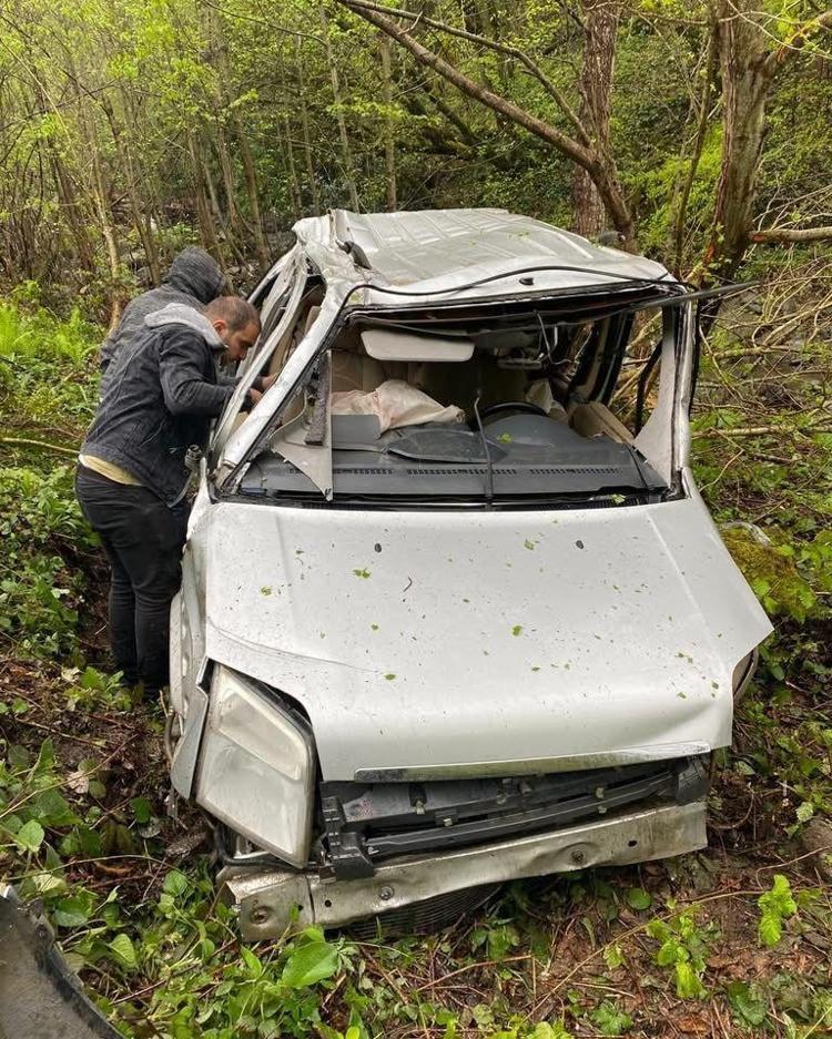 Artvin'in Borçka ilçesinde uçuruma yuvarlanan hafif ticari aracın yaralanan sürücüsü Hasancan Yıldırım ile kurtarma çalışmaları sırasında fenalaşan orman muhafaza memuru Gökhan Gökaydın hastaneye tedaviye alındı.