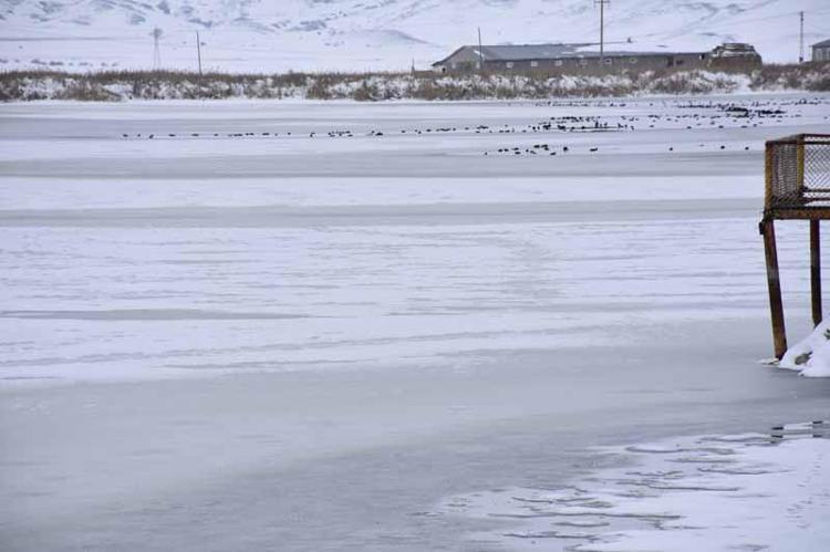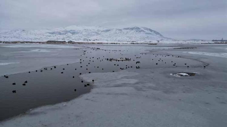 Bölgedeki doğal su kaynakların beslemesiyle oluşan gölde bulunan sakar meke, yeşilbaş ördek, elmabaş, türü kuşlar ise yüzeyde az sayıda kalan donmamış alanlarda toplandı.