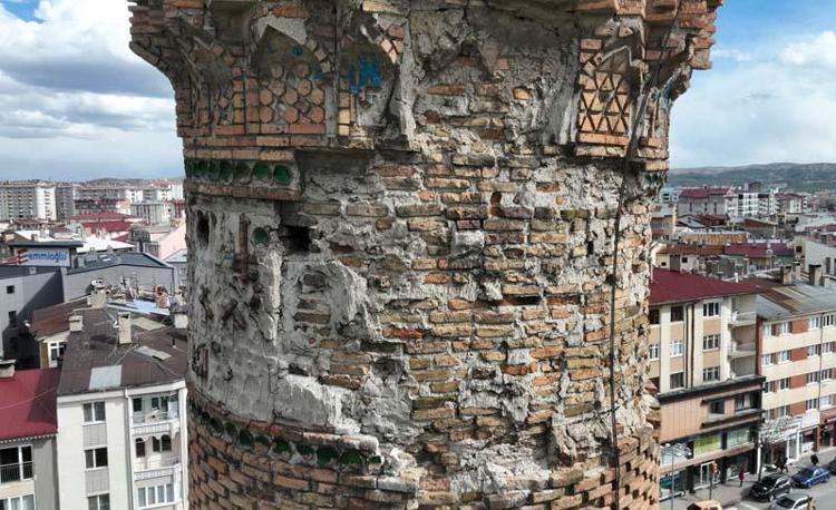 Yıllardır eğikliğine rağmen ayakta durmaya devam eden minarenin yüzey bezemelerinde zamanla dökülmeler oldu.