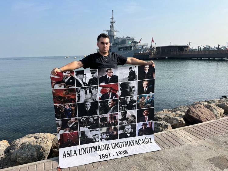 İzmir’de yaşayan Dalgıç Yağız Göçmen (26), Ulu Önder Gazi Mustafa Kemal Atatürk'ü, ebediyete intikalinin yıl dönümünde su altında andı. Karaburun ilçesine bağlı Mordoğan’da dalış yapan Göçmen, Gazi Mustafa Kemal Atatürk için hazırladığı pankartı açarak su altında görüntüledi. Ardından yüzerek Mordoğan’a bağlı Taş Adaya çıkan Göçmen, burada bir kez daha pankartı açtı.