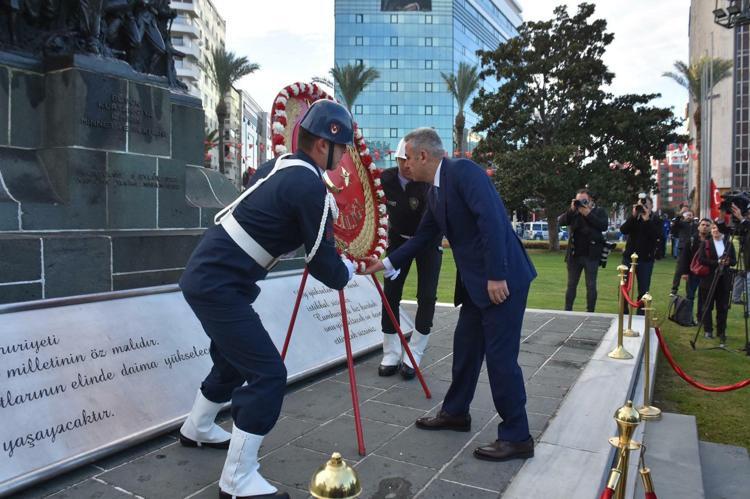 İzmir Valisi Süleyman Elban, törendeki konuşmasında, "Atatürk ismi her geçtiğinde rahmetle, minnetle, özlemle anıyoruz. Sevgimizi, saygımızı, minnetimizi hep dile getiriyoruz. Atatürk'ü gerçek manada anlar ve tanırsak ona olan sevgimiz, ilkelerini anlamamız, Cumhuriyet’in anlamını ve kıymetini bilmemiz daha farklı olacaktır" dedi.