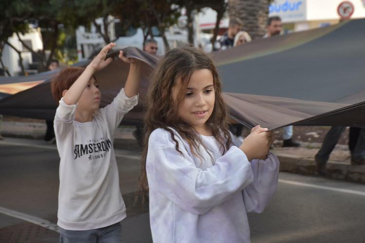 350 METRELİK ATATÜRK POSTERİ İLE 'ATA'YA SAYGI YÜRÜYÜŞÜ'