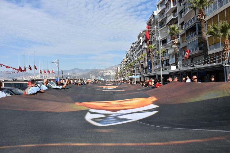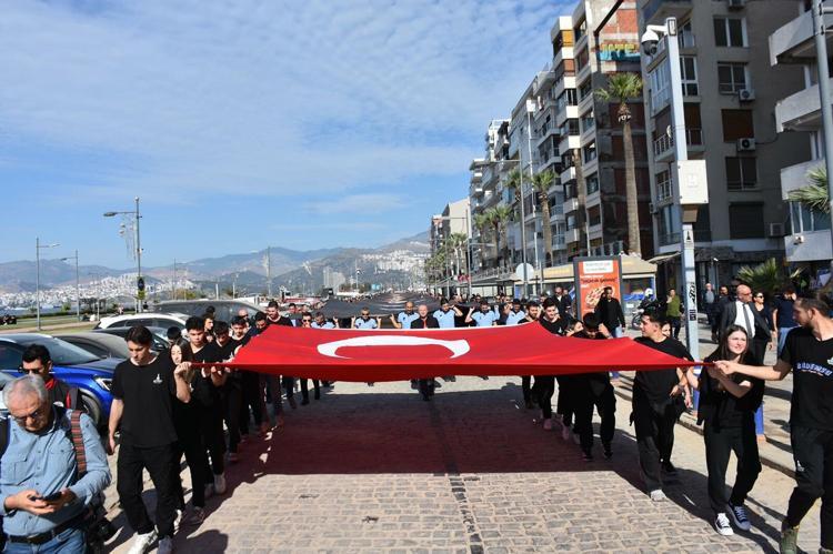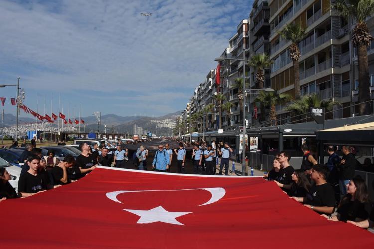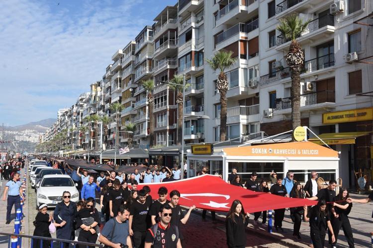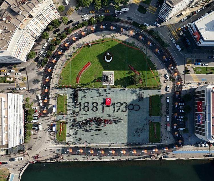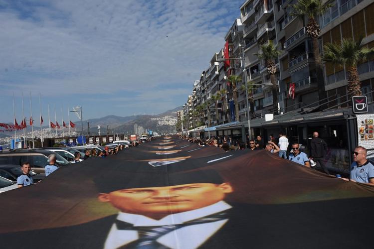 Türkiye Cumhuriyeti'nin kurucusu Ulu Önder Gazi Mustafa Kemal Atatürk'ün vefatının 87'nci yıl dönümü dolayısıyla İzmir Büyükşehir Belediyesi, 350 metrelik Atatürk posteri ile 'Ata'ya Saygı Yürüyüşü' düzenledi. 7’den 70’e İzmirlilerin katıldığı yürüyüş, Alsancak Limanı’ndan başladı, Cumhuriyet Meydanı'nda sona erdi. Yürüyüşün ardından meydanda bir araya gelenler, bedenleriyle 1881-1938 yazarak Büyük Önder Mustafa Kemal Atatürk'ü andı. Koreografi, dronla görüntülendi. Program saygı duruşunda bunulması ve İstiklal Marşı'nın okunmasıyla devam etti. Burada bir konuşma yapan İzmir Büyükşehir Belediyesi Başkan Vekili Zafer Levent Yıldır, "Bugün 87 yıllık bir özlemin, acının, ebedileşen bir inancın yıl dönümünü paylaşıyoruz. Milletimizin kalbinde hiç sönmeyecek ışığın sahibini, Ulu Önderimiz Gazi Mustafa Kemal Atatürk’ü anıyoruz. O hiçbir zaman yalnızca bir komutan, devlet kurucusu olmadı, bir millete kendi kaderini eline alma bilincini kazandıran öğretmendi" dedi.