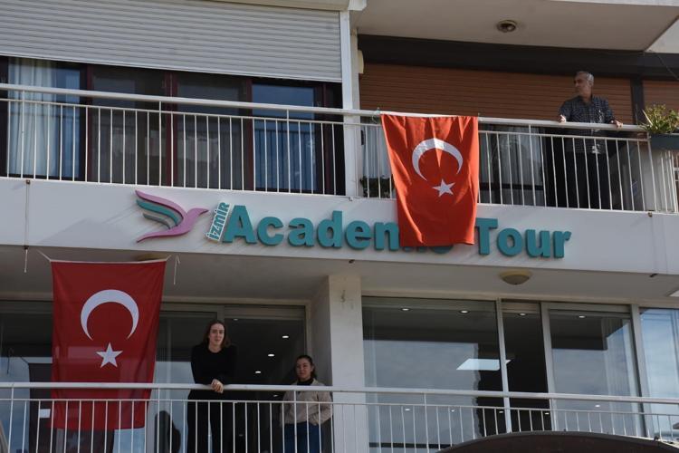 İstiklal Marşı eşliğinde Türk bayrağının göndere çekilip, yarıya indirilmesinin ardından tören sona erdi.