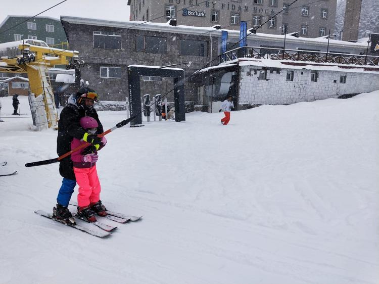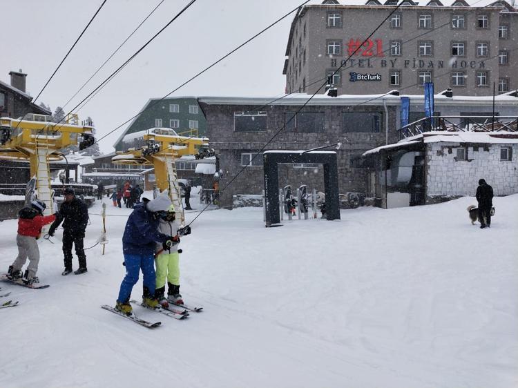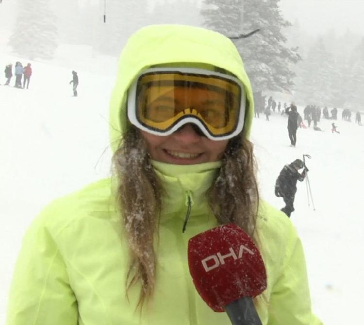 Süper burası şu an çok mutluyum. 3 senedir geliyoruz. İlk geldiğimiz gün kar yoktu. Bütün pistler kapalıydı, kayamadık. Bugün hazır kar yağmışken koşa koşa kaymaya geldik. Çok keyifli. Biraz yorucu ama aşırı eğlenceli” dedi.