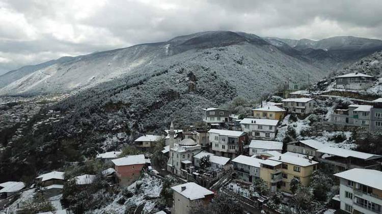 Bursa’da yüksek kesimlerde kar yağışı etkili olurken, Uludağ’ın eteklerindeki mahallelerde güzel görüntüler oluştu. Bölge dronla havadan görüntülendi.