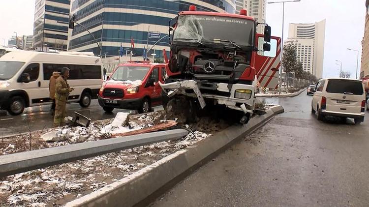 Ümraniye'de yangın ihbarına giden itifaiye aracı kaza yaptı