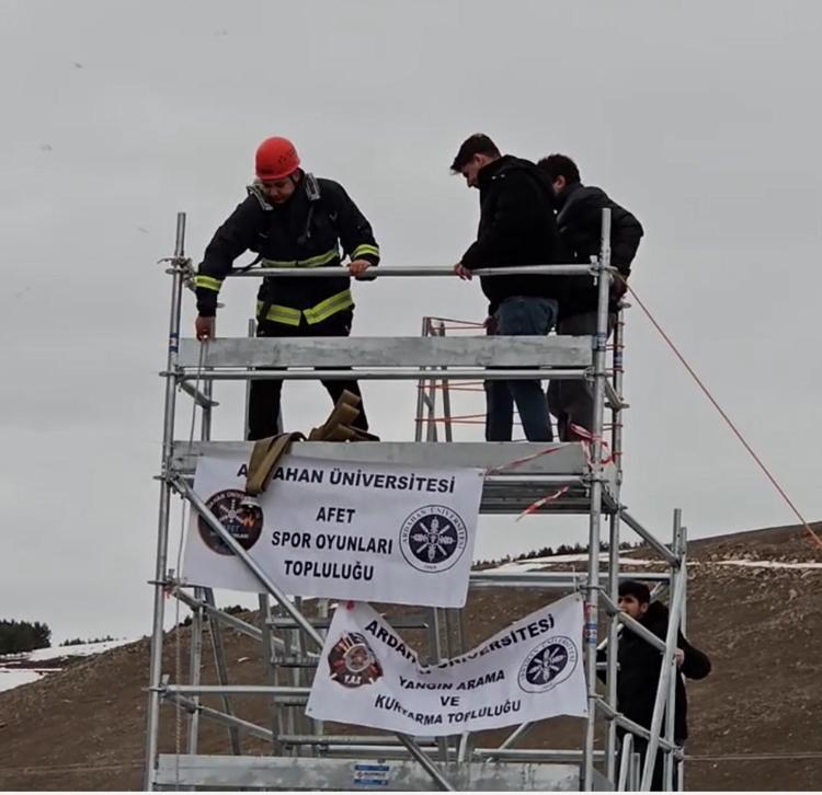 Ardahan Üniversitesi Nihat Delibalta Göle Meslek Yüksekokulu Sivil Savunma ve İtfaiyecilik Programı öğrencileri, Türkiye’de ilk kez düzenlenecek Ulusal Üniversiteler Arası Afet Spor Oyunları’na hazırlanıyor. Öğrenciler, hortumla merdiven tırmanma, ağırlık çekme, slalom koşu, yangın söndürme ve yaralı taşıma gibi etaplardan oluşan zorlu parkur için antrenman yapıyor.