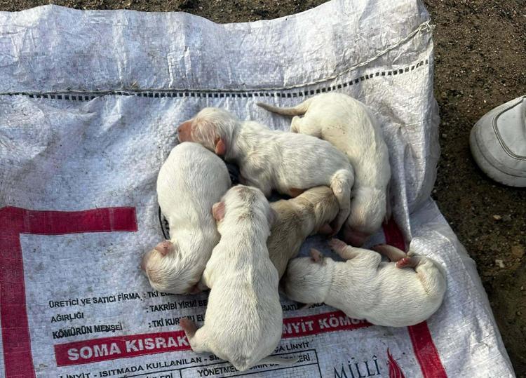 Manisa'da, üniversite öğrencileri çöp konteynerine atılmış çuvalda 4, poşette ise 2 yavru köpek buldu. Köpekler, özel bir veteriner kliniği tarafından korumaya alındı.