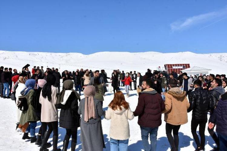 Üniversite öğrencileri kar festivalinde halay çekip eğlendi
