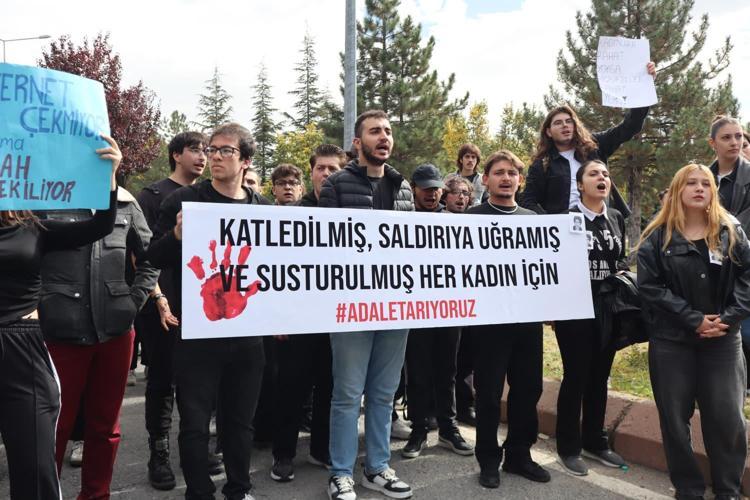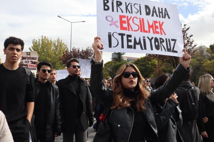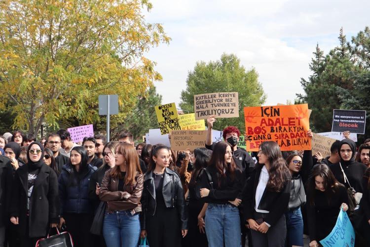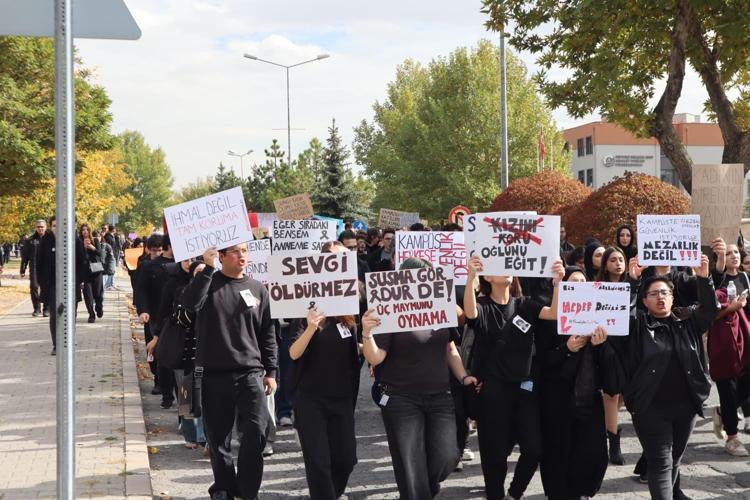 Kayseri Erciyes Üniversitesi’nde (ERÜ) Ferhat Karakaya’nın eski eşi Meliha Keskin’i pompalı tüfekle öldürmesinin ardından öğrenciler, ‘Sevgi öldürmez’, ‘Kadınlar size Allah’ın emanetidir’, ‘Kampüste ölmek istemiyoruz’ yazılı pankartlar hazırladı. Edebiyat Fakültesi önünde toplanan öğrenciler, Meliha’nın saldırıya uğradığı yere çiçekler bıraktı.