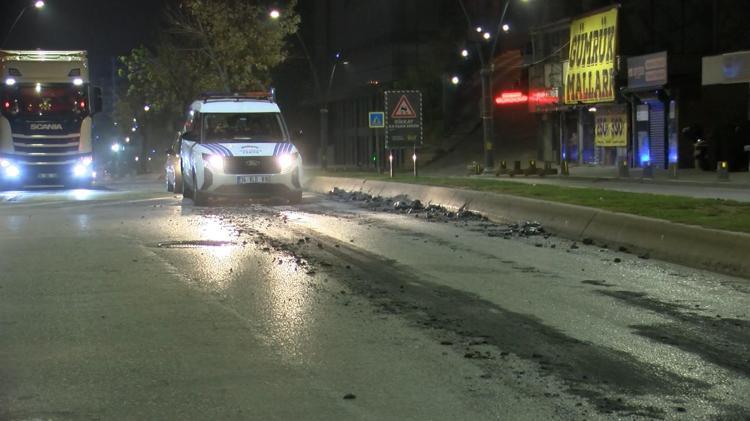Yola dökülen irili ufaklı moloz parçaları trafiği aksattı, bazı araçların molozlardan zarar gördüğü iddia edildi.