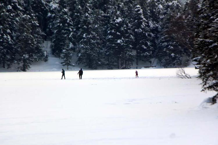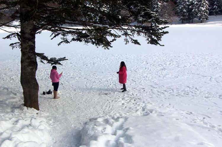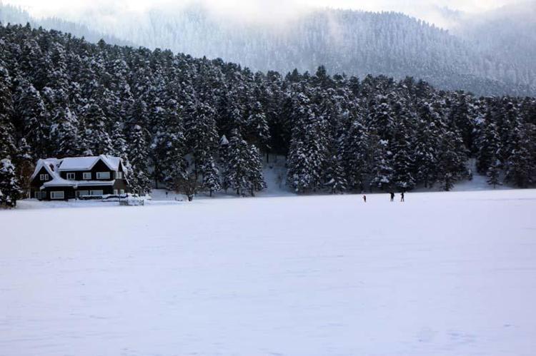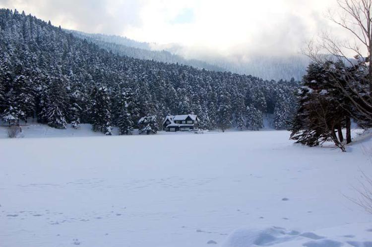 Gölün karla kaplanan yüzeyinin ormanlarla bütünleşmesi ise güzel manzaralar oluşturdu.