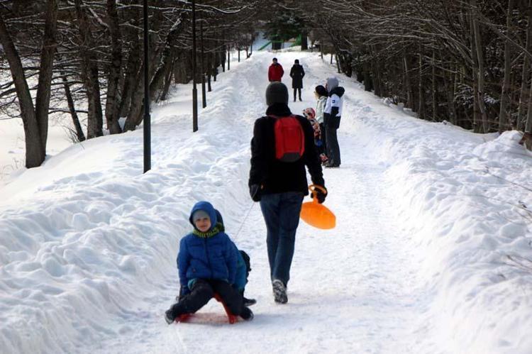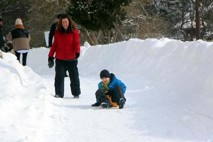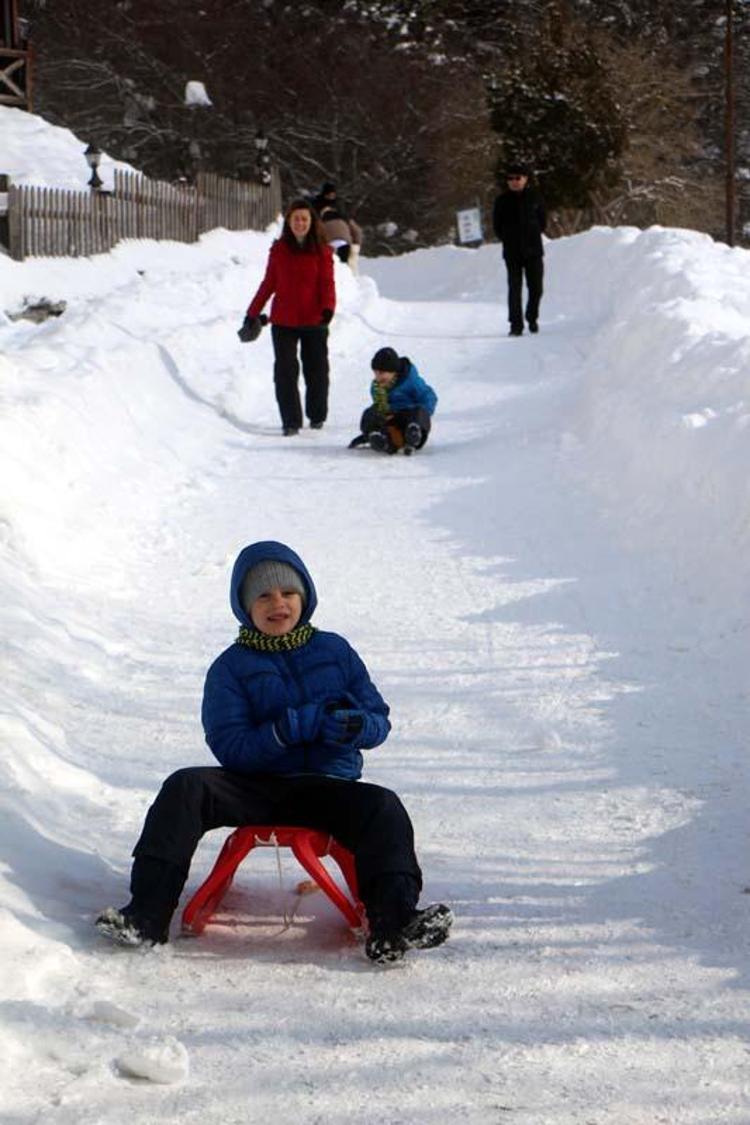 Çocuklar, karla kaplı alanlarda kayarak eğlendi.
