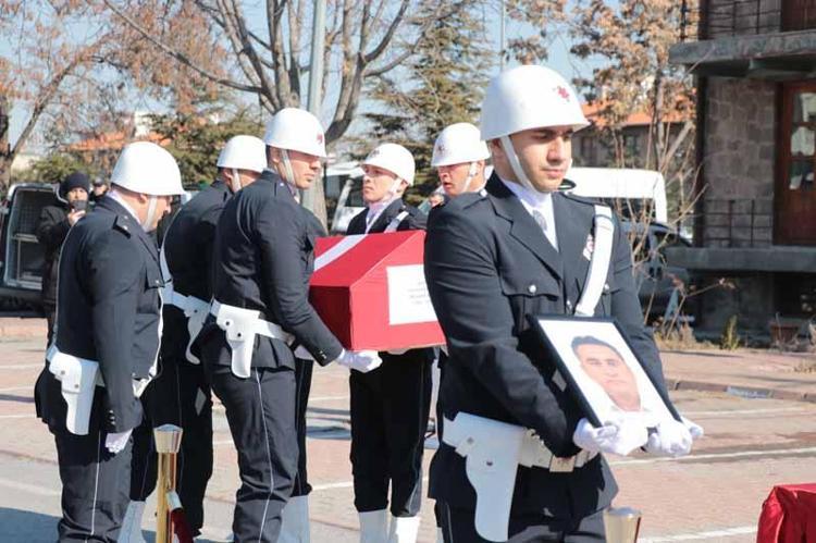 Kayseri’de, uyuşturucu operasyonunda kalp krizi geçirip şehit olan polis memuru İbrahim Birol (41) için Emniyet Müdürlüğü'nde tören düzenlendi.