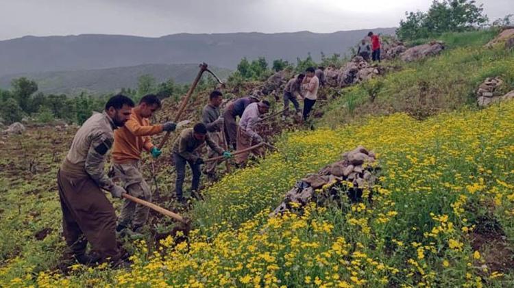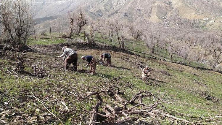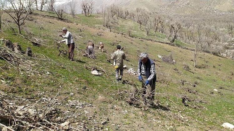 Hakkari'nin Irak sınırında bulunan Derecik ilçesindeki köylerde yaşayanlar, tarla, bahçe hazırlama ve üzüm bağları budama döneminde bölge engebeli olduğundan imece usulü işlerini yapıyor. Akdemir köyünde oturan Turan Kaya, imece geleneğinin yaklaşık 1 asırdır devam ettiğini söyledi.