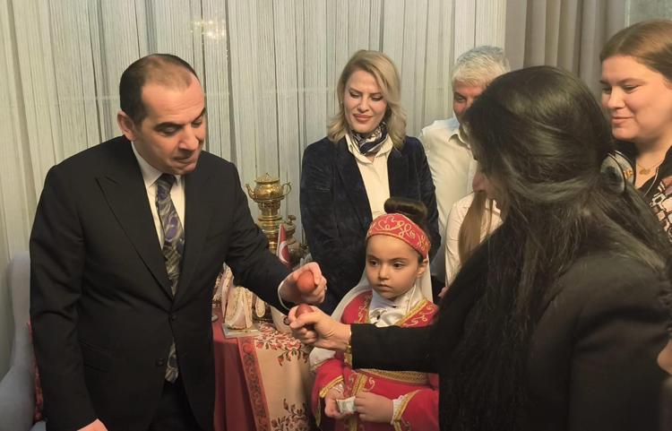 Iğdırlı Nurcan ve Koru Tuna ailesinin evinde gerçekleştirilen ‘yedi levin’ kutlamasında Vali Taşolar, çocuklarla yumurta tokuşturdu. Nevruz kutlamalarının en önemli etkinliklerinden olan ‘kulak asma’ olarak ifade edilen bölümde kapı dinleyen Vali Taşolar, ‘mendil atma’ bölümünde de kapı önüne mendil bırakarak 7 ayrı çeşitten hazırlanan çerezden payını aldı.