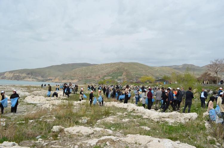 Bitlis'in Adilcevaz ilçesindeki Van Gölü sahilinde öğrenciler, kurum amirleri ve vatandaşların da katılımı ile yapılan çevre temizliğinde 3 kamyon dolusu çöp toplandı.