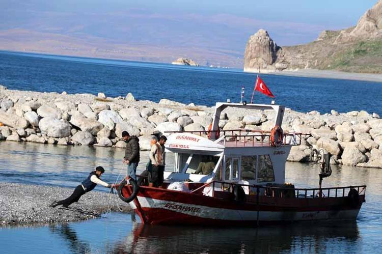 Van Gölü'ndeki balıkçı tekneleri, çekilme nedeniyle limana yanaşmakta zorlanıyor