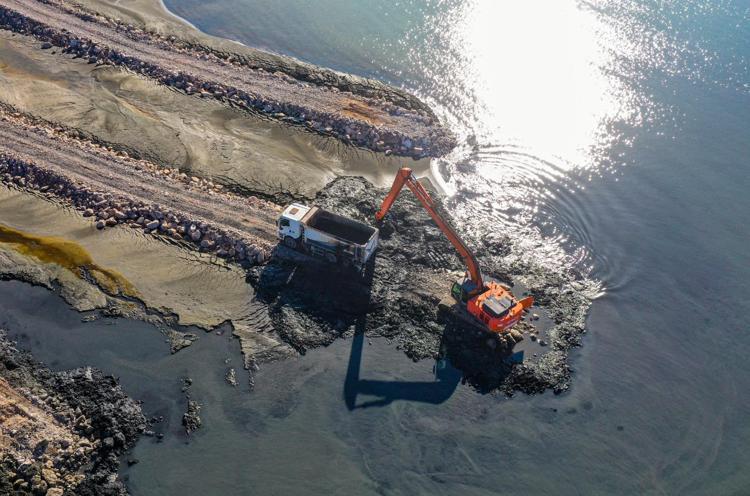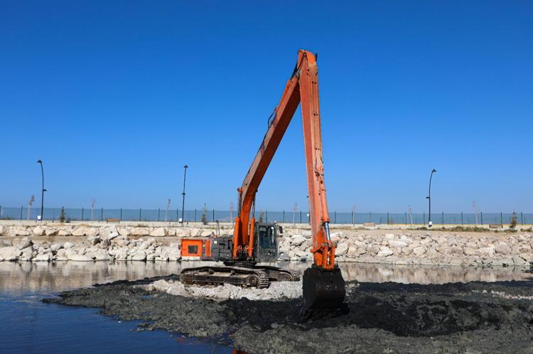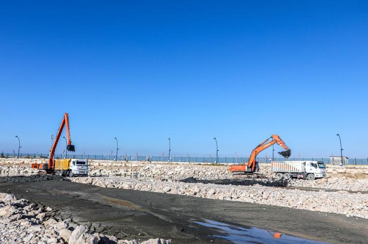 İskele sahilinde 50 iş makinesi ve 65 personelle yapılan çalışmalarda şu ana kadar 615 bin metreküp dip çamuru ve balçık çıkarıldı. 1'inci etaptaki çalışmaların yüzde 90'ı tamamlandı.