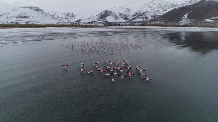 Yüzlerce kuş türüne mekan olan Van Gölü Havzası, flamingolar için de önemli konaklama yerlerinin başında geliyor.