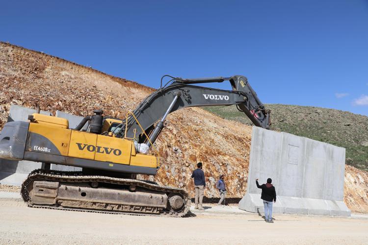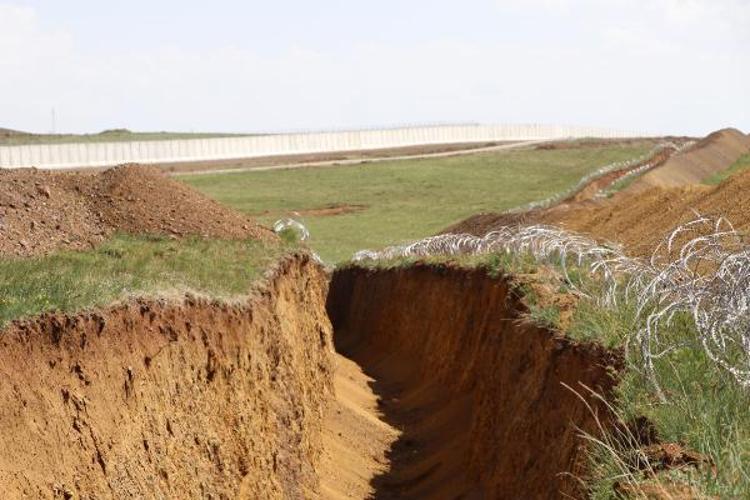 Geri kalan bölümde de yüksekliği çelik tellerle birlikte 5 metreyi, genişliği ise 2,87 metreyi bulan beton bariyerler döşeniyor. Beton bariyerler döşenirken, aynı güzergahta kaçak geçişlerin engellenmesi için hendekler de kazıldı.