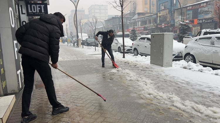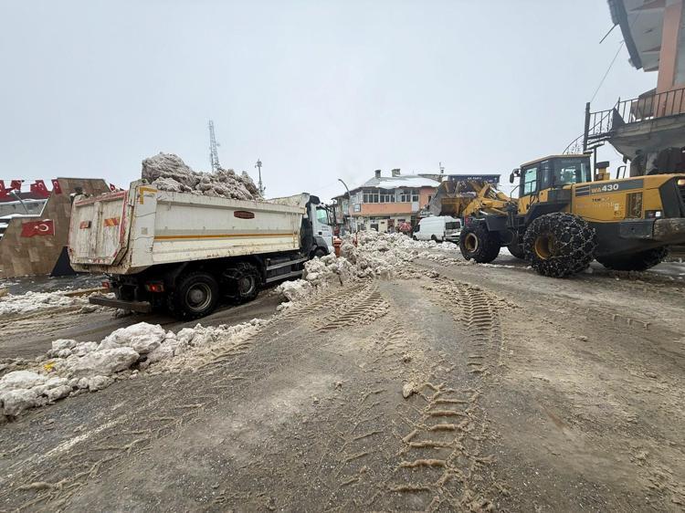 Esnaf, sabah iş yerlerinin önündeki kar kütlelerini küreklerle temizlerken, belediye ekipleri iş makineleriyle kar temizleme çalışması başlattı. İlçenin belirli noktalarında toplanan kar kütleleri kamyonlara yüklenip, ilçe dışına taşındı.