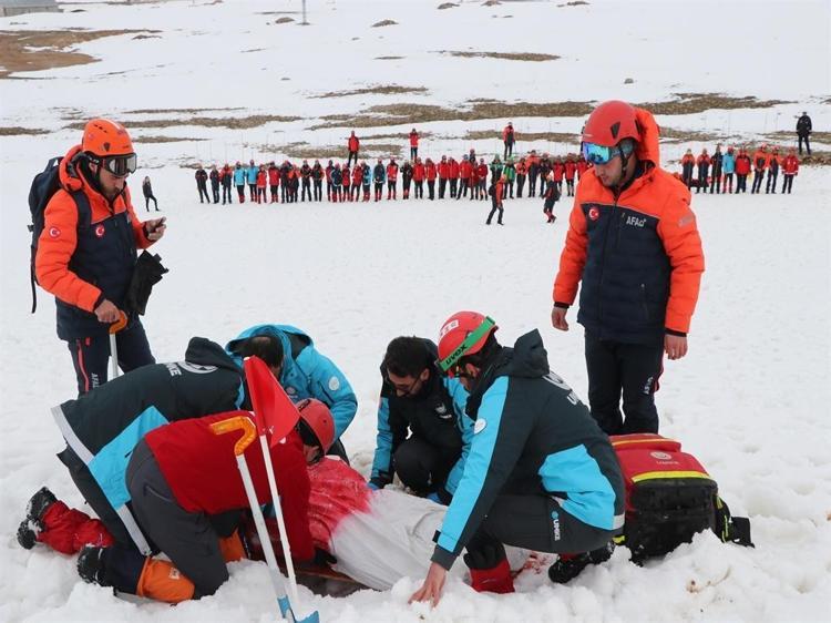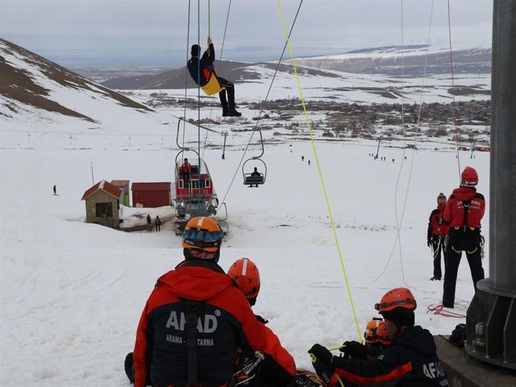 Van'’da olası çığ olaylarına karşı müdahale kapasitesini artırmak amacıyla AFAD, polis, jandarma, UMKE ve gönüllü arama kurtarma ekiplerinden oluşan 150 kişilik ekiple tatbikat gerçekleştirildi. Abalı Kayak Merkezi’nde düzenlenen tatbikatta, senaryo gereği çığ altında kalan 2 yaralı ile teleferikte mahsur kalan 4 kişi ekipler tarafından kurtarıldı.