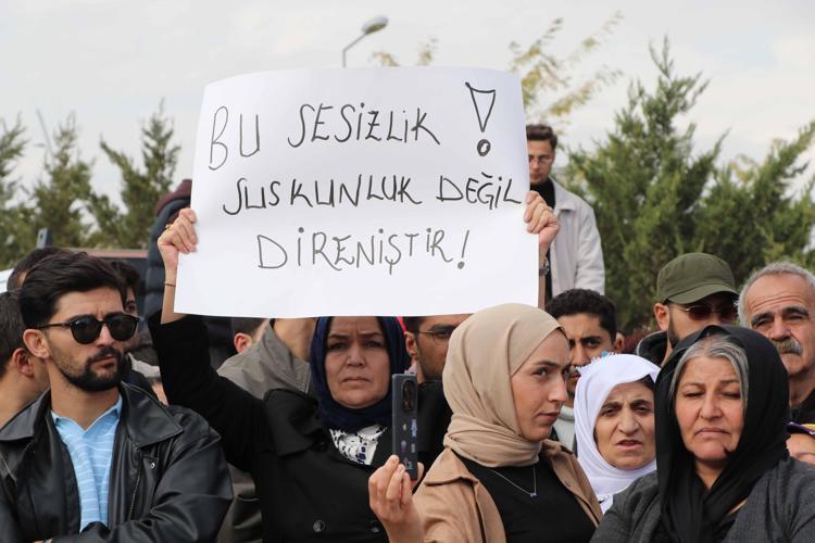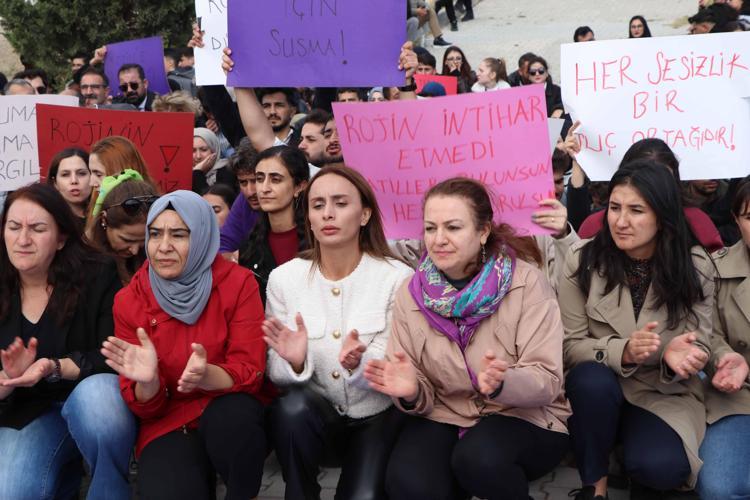 'Rojin sustu, biz susmayacağız', 'Adalet yerini bulana kadar buradayız', 'Rojin intihar etmedi, katiller bulunsun ve hesap sorulsun', 'Rojin için susma', 'Bu sessizlik suskunluk değil, direniştir' dövizlerinin açıldığı açıklama sonunda oturma eylemi yapıldı. Eylemin ardından grup dağıldı.