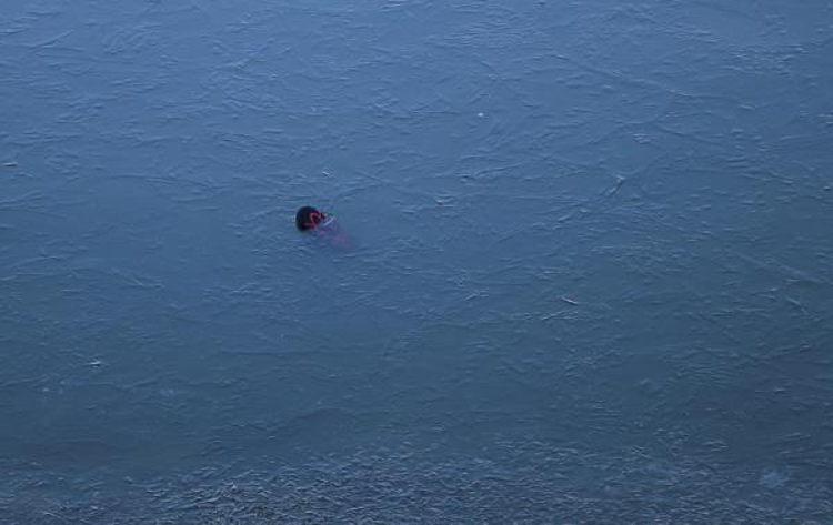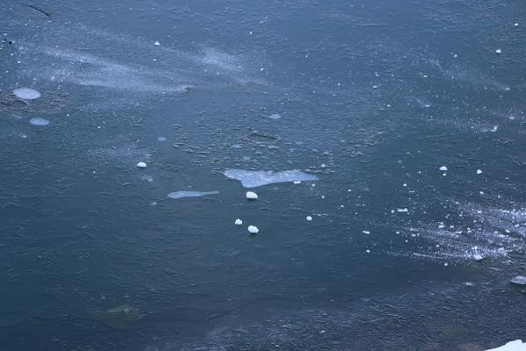 Merkeze 5 kilometre uzaklıktaki göletin donmuş yüzeyi, güzel görüntüler oluşturdu.