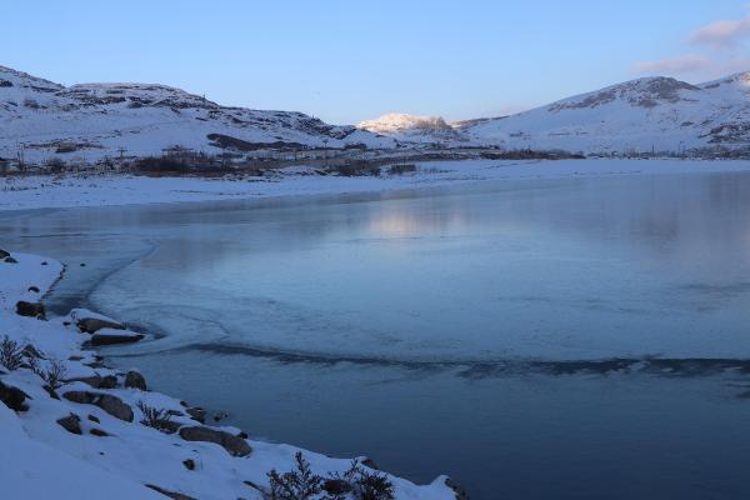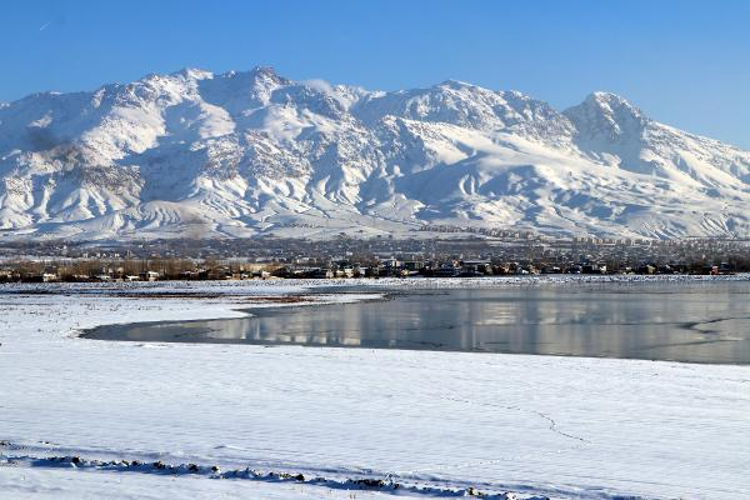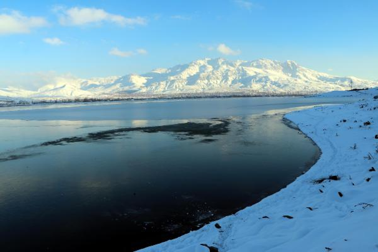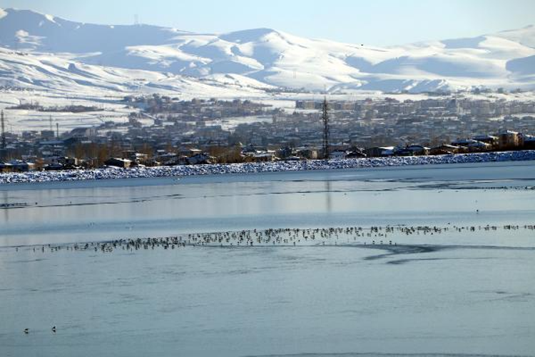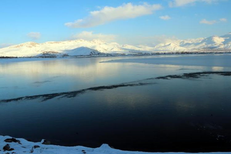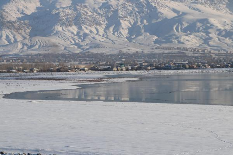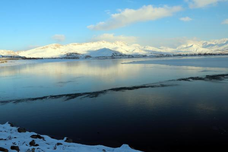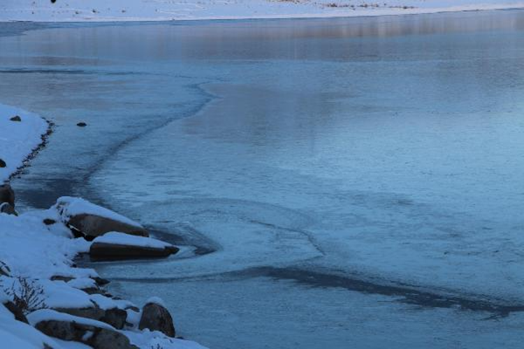 Van'da soğuk hava sonrası Sıhke Göleti'nin yüzeyi kısmen dondu.