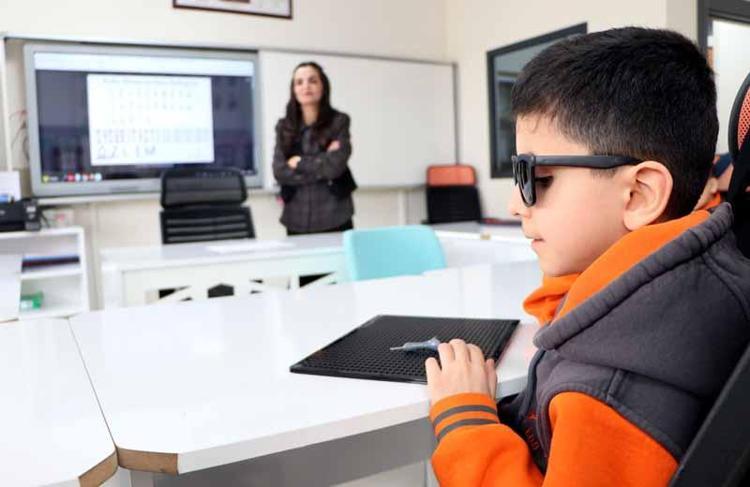 Van'da Mustafa Cengiz İlkokulu bünyesinde 9 yıl önce görme engelliler için açılan özel sınıfta, öğrenciler hem eğitim-öğrenim görüyor hem de sosyalleşiyor. Ders süreci özel materyallerle işlenirken, Van'ın bu alandaki tek sınıfının öğretmeni olan Elif Şerife Ölmez, "Buradaki çocuklarımın hayata, bilime öğrenmeye dair istekleri çok fazla" dedi.