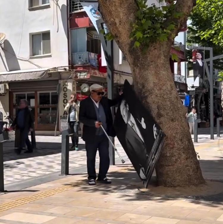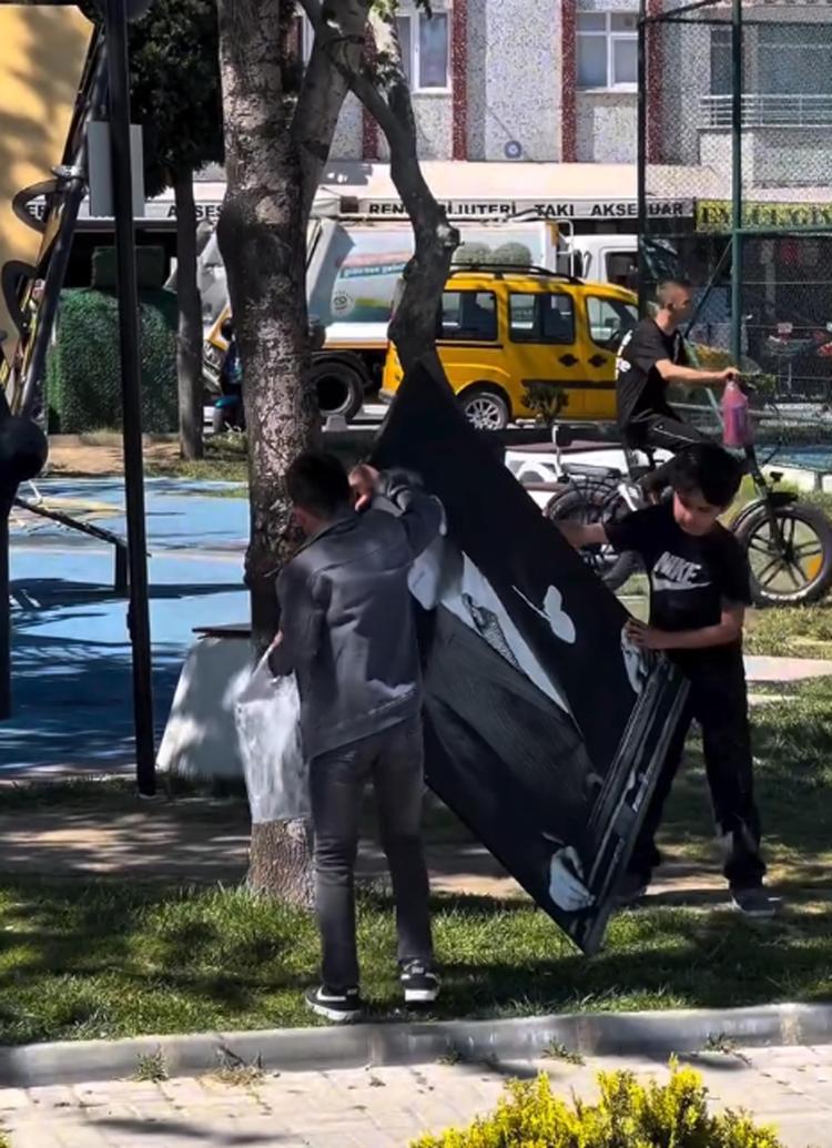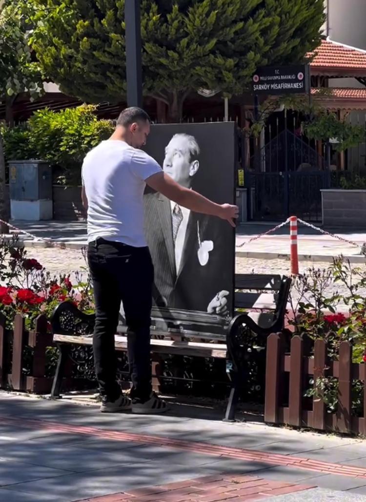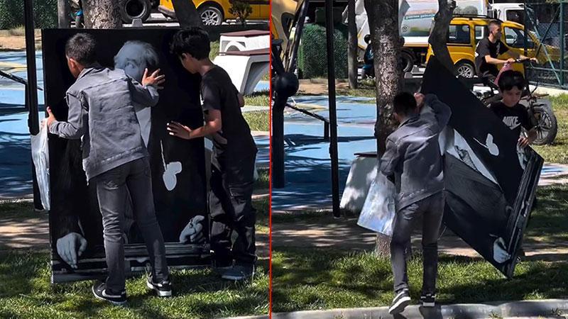 Vatandaşların Atatürk hassasiyeti kamera ile görüntülendi... İki çocuk Atatürk portresini düzelttikten sonra öptü