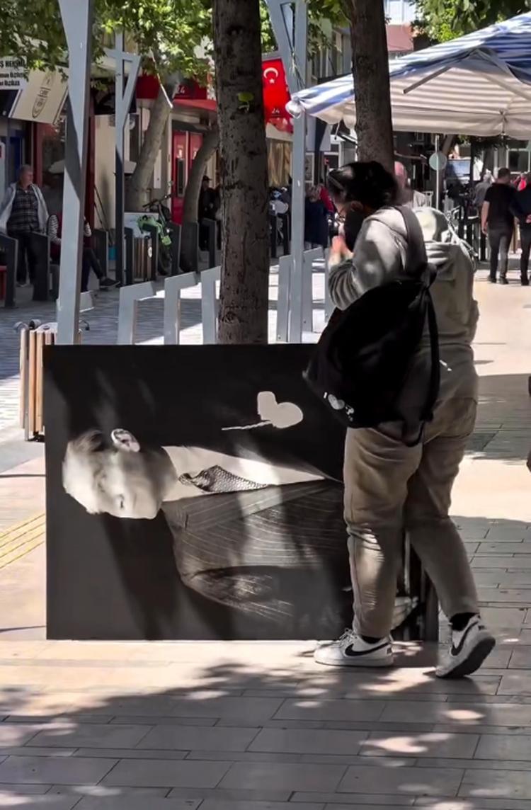 Kamera ile görüntülenen deney sırasında vatandaşlar, yatay bırakılan Atatürk portrelerini düzelterek bulundukları yere bıraktı.
