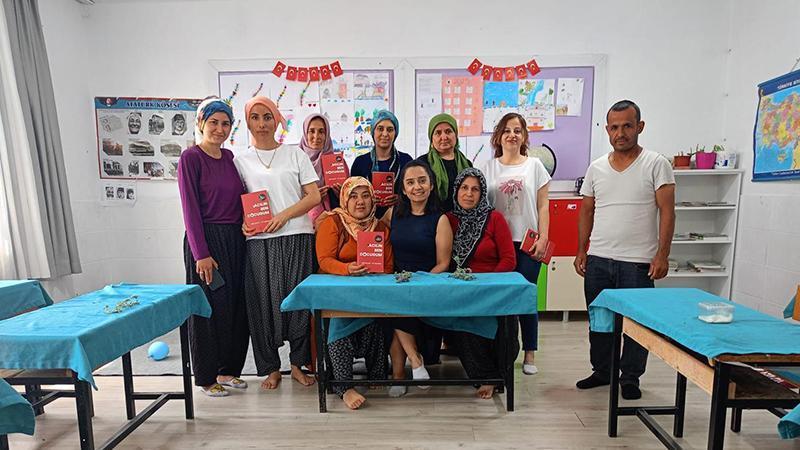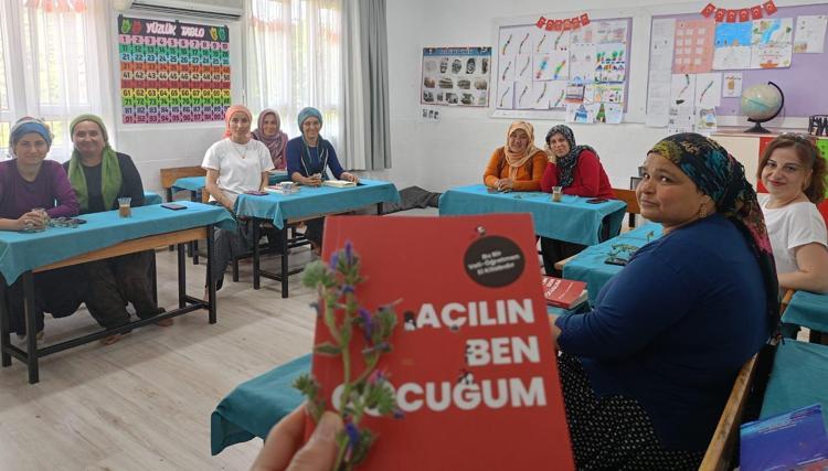 Mersin'in Erdemli ilçesindeki Hacı Halil Arpaç İlkokulu'nda 'Velilerimizle Öğrenme Yolculuğumuz' projesi kapsamında, veliler çocuklarının sınıfında kitap okuyor. Anne babalar, çocuklarının okuduğu kitapları okumaktan çok mutlu olduklarını söylüyor.