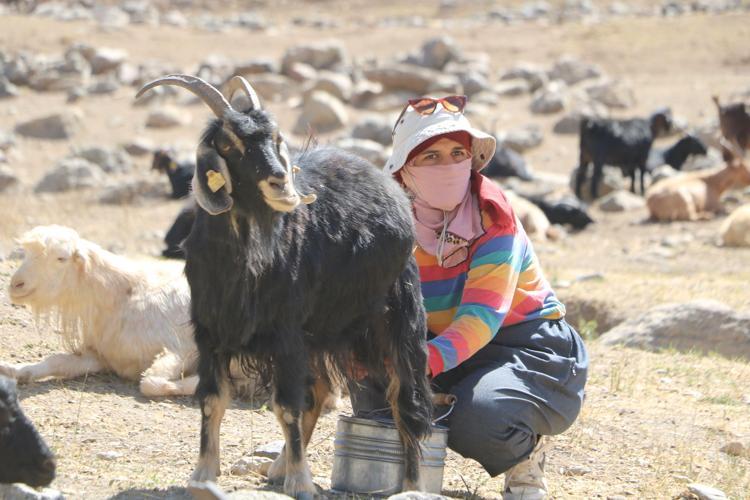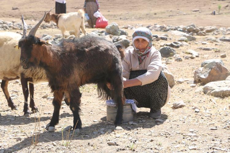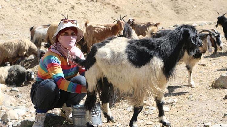 Veterinerlik öğrencisi Nimet, yaylada annesiyle birlikte koyun, keçi sağıyor