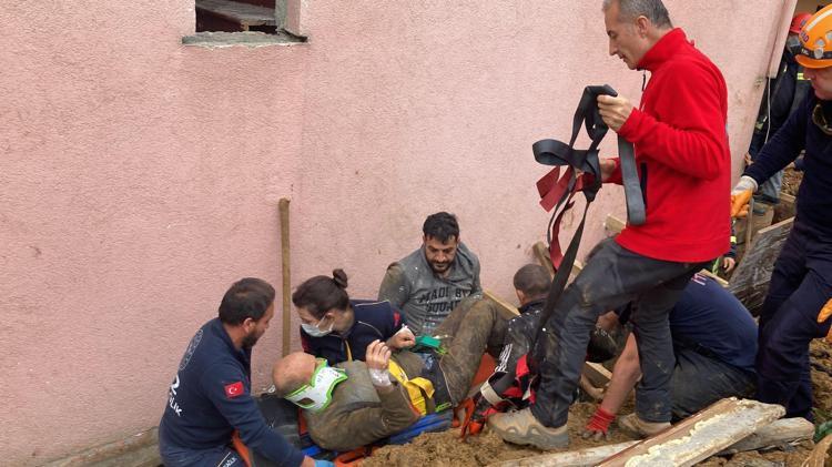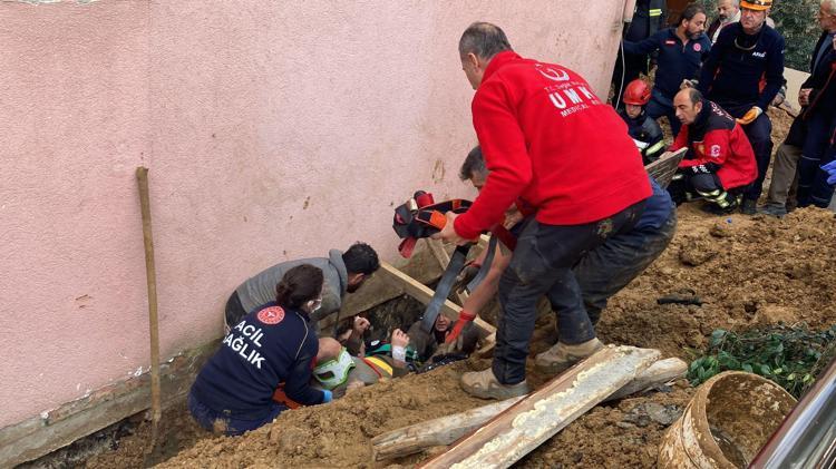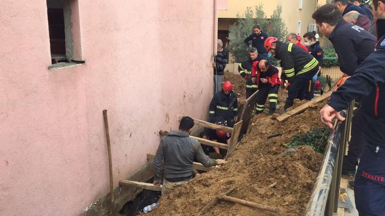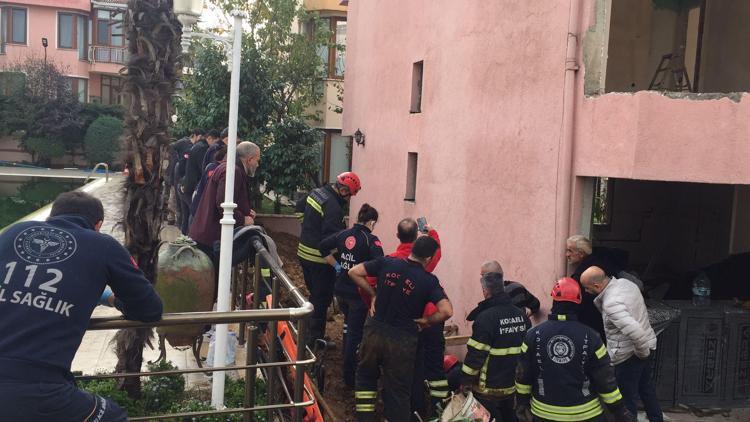 Kocaeli'de bir villada dış cephe ısı yalıtımı çalışması yaptığı sırada kayan toprağın altında kalan işçi Ekrem Bayraktar (64), 2 saat süren müdahaleyle yaralı olarak kurtarıldı.
