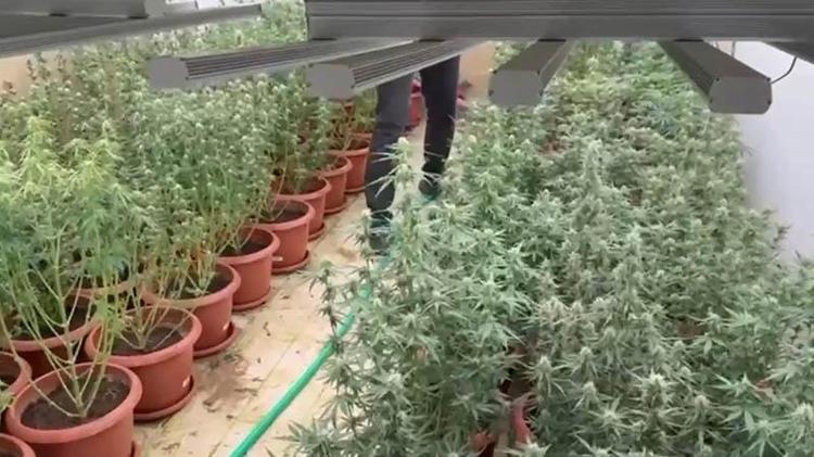 İzmir'in Aliağa ve Menemen ilçelerinde 2 villada kurulan serada özel düzenekle yetiştirilen 212 kök kenevir ile 9 kilo 350 gram esrar ele geçirildi, 3 şüpheli tutuklandı.