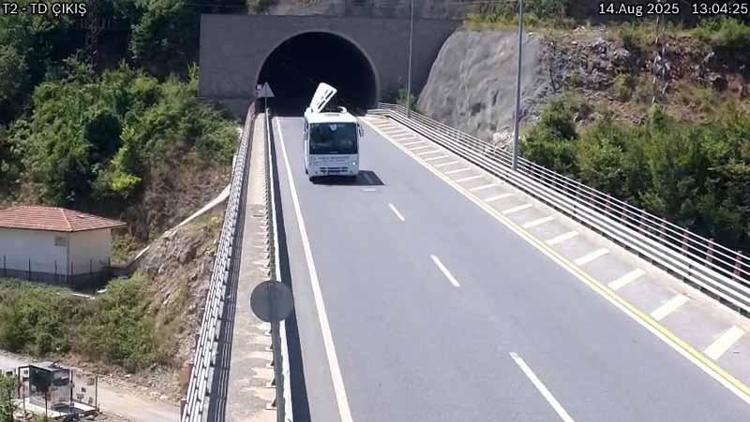 67 HO 8007 plakalı özel halk otobüsünün 14 Ağustos’ta, tünel çıkışındaki viyadükte geri manevra yaptığı anlar güvenlik kamerasına yansıdı. Kazaya ilişkin adli inceleme sürüyor.