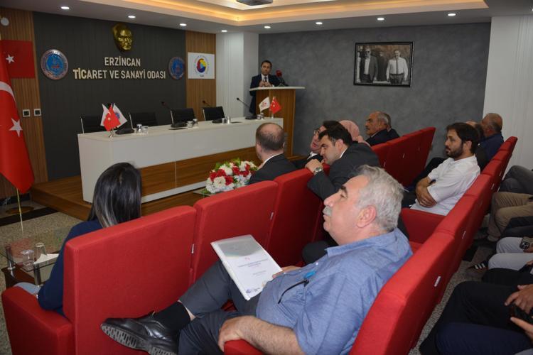 Erzincan'da 'Azerbaycan'da Yatırım ve İş Fırsatları' konulu toplantı düzenlendi. Erzincan Ticaret ve Sanayi Odası'ndaki toplantıya Vali Yardımcısı Rumeysa Sena Kurt, Belediye Başkan Yardımcısı Faruk Akan, Erzincan Ticaret ve Sanayi Odası Başkanı Ahmet Tanoğlu ve iş insanları katıldı.