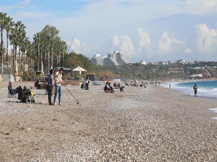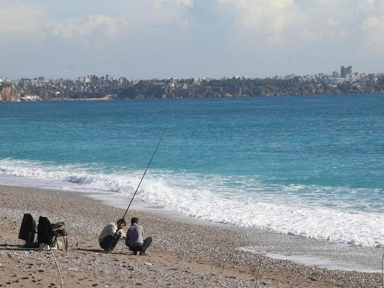 Antalya'da dün etkili olan yağışın ardından kentte güneşli hava hakim oldu. Amatör balıkçılar, denizde oluşan dalgalar eşliğinde Konyaaltı sahilinde olta attı.